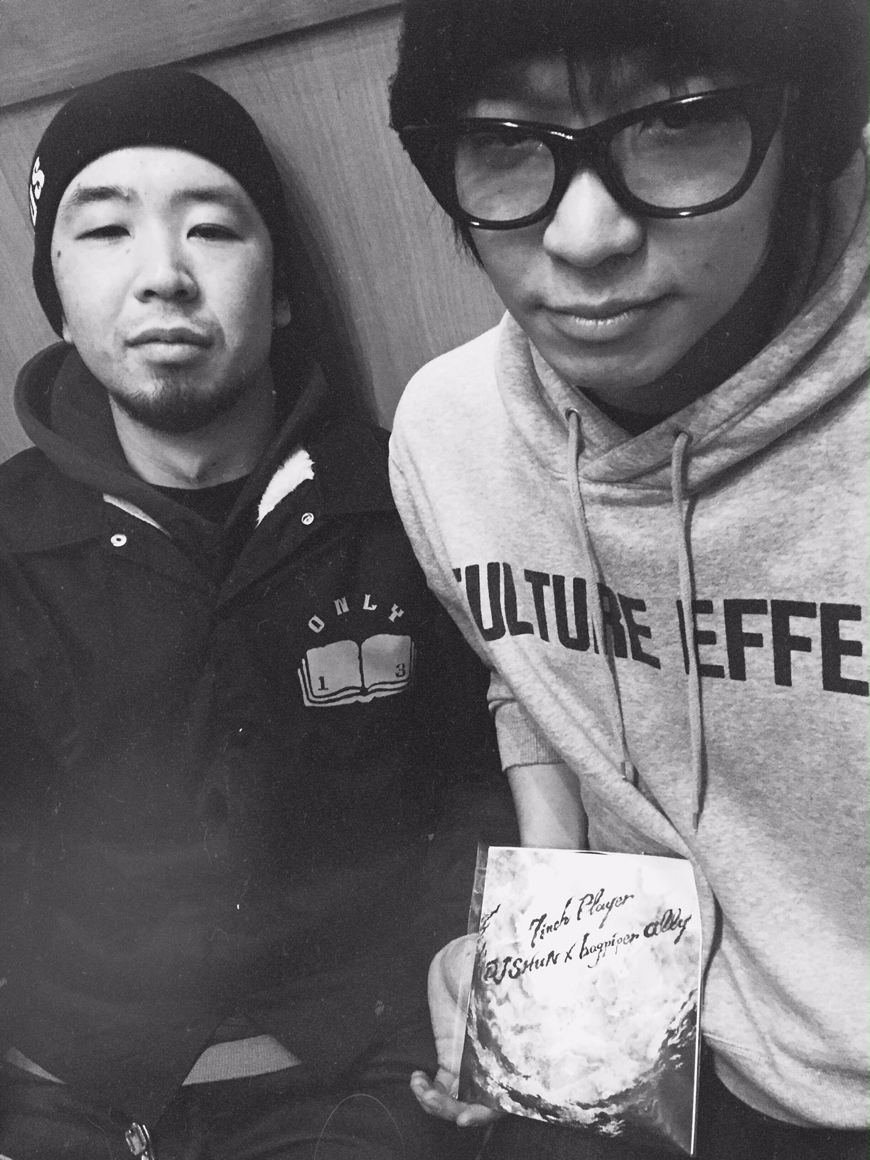 "Magic Mountain"をリリースして、その後何となく同じメンバーで"DON's Magic Mountain Band"名義でライブを半年ほど重ねてきてバンドの息も合ってきたので、例によって無計画にレコーディングをやってみることにした。レコーディングするとは言っても、ボクの頭の中には曲の断片的なスケッチしか無かったのだけれど、今回は断片の集積から何か面白い音楽を作ってみようと考えたのである。まずイメージのキーワードとなる言葉をノートに書き出し(「ダムの決壊」とか「Out of order」とか「コロンボ」とか)、それを元に辻褄の合うフレーズなりリズムなりを意識の底から、または最近耳にした音楽で引っ掛かっているものの再構築して引っ張り出し、スタジオではバンドに繰り返し同じフレーズを様々なニュアンスで演奏してみる。(途中でコロッケとメンチカツとパンとワインを食す)録音したものをウチに持ち帰り、1週間ほど寝かせた後に聴き返し、その繰り返しの中からどんな音楽が浮かび上がってくるのかを、老練な農夫が天気を読むように注意深く聴き取る。これが二番目の作業。スケッチはラフなデッサンに近いものになっているが、下絵として完成しないままに彩色に入る。イメージが喚起させられるままに音を付け加えていき、歌を入れてみると、ようやく曲が姿を見せることになる。次に作詞。詞を書く作業は音楽を作っていく作業より具体的なだけに苦痛でもある。今の自分というものから逃げずに正面から見据えなければならない。書くものがないという訳ではない。(毎日生きていれば、自ずとそこに溜まってくるものは存在する)しかし常にハッピーだったり気持ちが上がってくるようなものばかりではなく、むしろ見たくないものの方が多い。なので、そこから逃げ出すことのないように覚悟して挑む。(書き終えた時にはスッカラカンになったような気分になる)歌入れをして、mix downで画面に表示されないほどたくさんダビングされたトラックを刈り込み、更に加えしたりして完成させる。大体いつも通りではある。 今回は当初からHip Hopに寄ろうと考えていた訳ではなかったけれど、実験を重ねるウチにHip Hop的な音楽でしか纏まらないようになってしまったのである。テープの(というかデータの)速度を早めたり遅くしたり、ヘヴィなドラムの音を求める為に3つも4つも重ねたりしていると、何故だか中期ビートルズと同じようなサウンド作りをしているような気分に陥った。昔はロック、今ならHip Hopか。 もちろんボクはロックミュージシャンであり、「これからはHip Hopだぜ!」と息巻くほどの覚悟も確信もない。きっと死ぬまでロックをやる人間であろうと思う。それでもアーティストとして新しい音楽に興味を持ち、少しでも自分の間口を広げていきたいという思いも強い。それをボクはビートルズやローリング・ストーンズの姿勢から学んだのだ。彼らと同じ意思を持つ(ロック)ミュージシャンの端くれとして、違う時代に生きているボクはどのような音楽を作っていけるのだろうか。 ともあれ、完成したこのアルバムを本職としてHip Hopをやるミュージシャンにぶつけてみたいと思った。そのディスカッションである。相手は、クロちゃんことSeiichi Kurodaは今やあれもこれもと引っ張りだこで睡眠時間が取れているのかというトラックメーカーで、自身のグループ"Genious PJ's"をメインに、ボクのソロバンドでもギターを弾いてもらっている。更にクロちゃんの紹介で、2/1のリリースパーティライブで"Arcadia Blues Crew"としてボクのセットでターンテーブルをやってくれることになったクリエーターのDJ Shunの二人である。 ![]() 『知っておくべきだった/I Should Have Known Better』 DON(以下d):おれが音楽をやり始めた時は、音楽をやろうと思えばロックバンドだという意識しか持てなかったから、若い世代のキミらがどのようにしてHip Hopを自分の音楽表現の手段にしようという経緯になったのか興味深いのだけど・・・・。 DJ Shun(以下s):元々自分はパンクスでバンドマンだったんすよ。 ハードコアのバンドでギター弾いていて。で、ある時ツルんでいた先輩から「お前ちょっとターンテーブルっつーのやってみない?」と言われて、「やってみっかー」くらいの軽いノリから始めて。その頃聴いていたのはニューヨークのハードコアパンクなんかとRage Against The MachineとかHouse of Painとか、割とHip Hopに近い音楽もあったんで余り抵抗もなく。Air Jamとかでも、パンクとHip Hopは近い感じしてたし。それでスクラッチを楽器感覚でやり始めたらハマっちゃって、始めて何ヶ月かでもうギター弾かなくなっちゃって、トラックも作るようになったし、どんどんHip Hopにのめり込んで行ったという感じすね。自分に合ってたということなんでしょうね。 Seiichi Kuroda(以下k):俺も最初はギターでパンクスでした。Hip Hopと言えばオリコンのチャートに入る"Da Yo Ne"とかしか知らないし、ハッキリ言ってあまり良い印象じゃなかったんですけど、高校卒